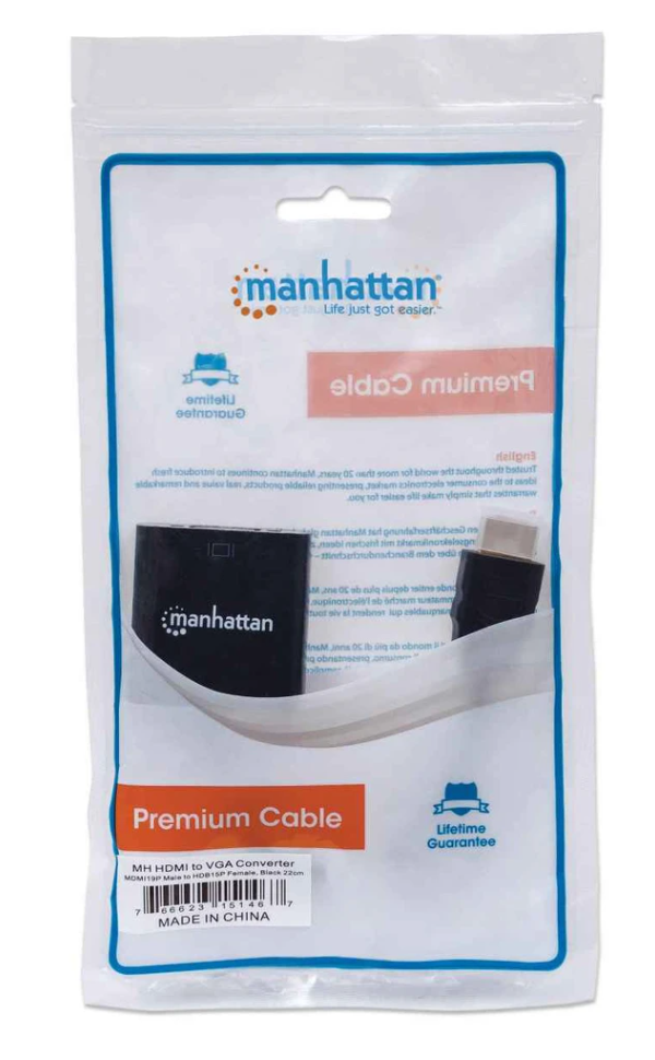 CABLE CONVERTIDOR MANHATTAN HDMI A VGA HD15 1080P MACHO HEMBRA NEGRO 151467